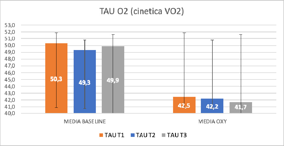 Mathematically it represents the time it takes for a body’s oxygen uptake to reach 63.2% of the total variation in response to a disturbance, which in our study is associated with supplementation with air containing hyper-concentrated oxygen.